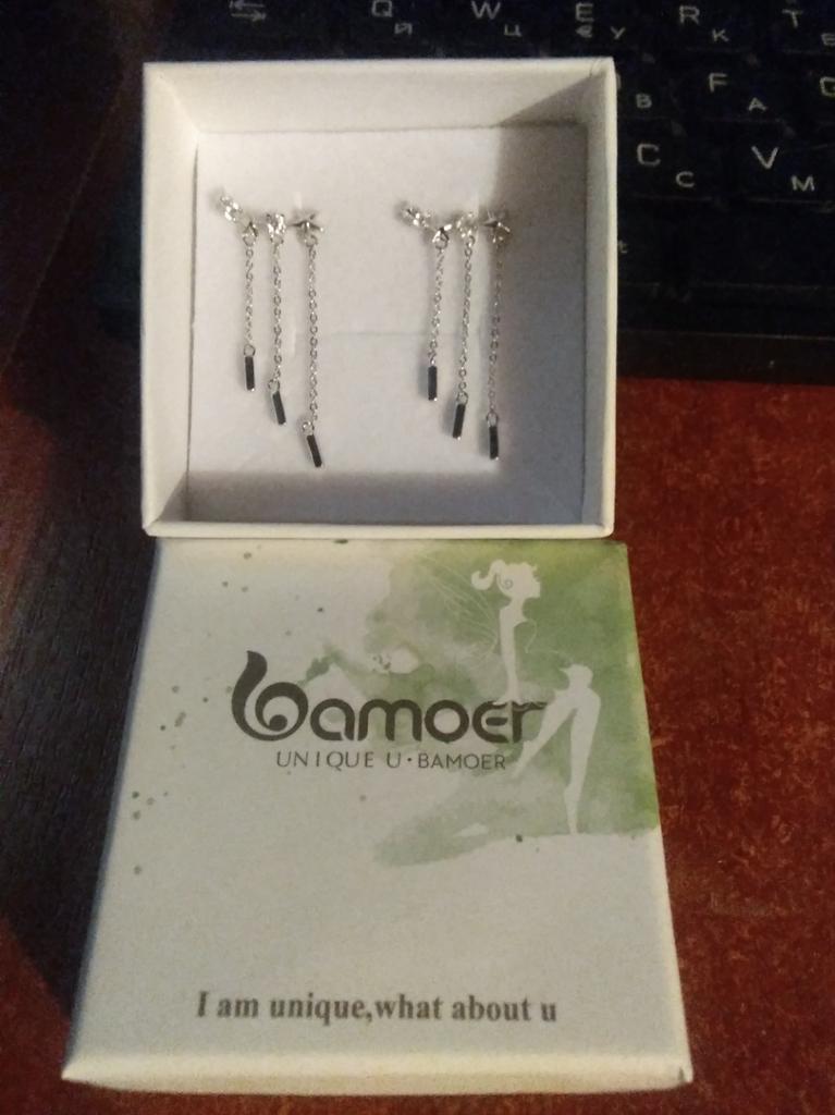 Очень милые сережки. Размером немного меньше, чем я ожидала, и цепочки короче, чем казалось, но всё равно смотрится просто потрясающе. На самих серьгах и застежках стоит 925 проба. Чисто внешне очень хороши, и упаковка на уровне. В общем, товар, продавца и бренд рекомендую)