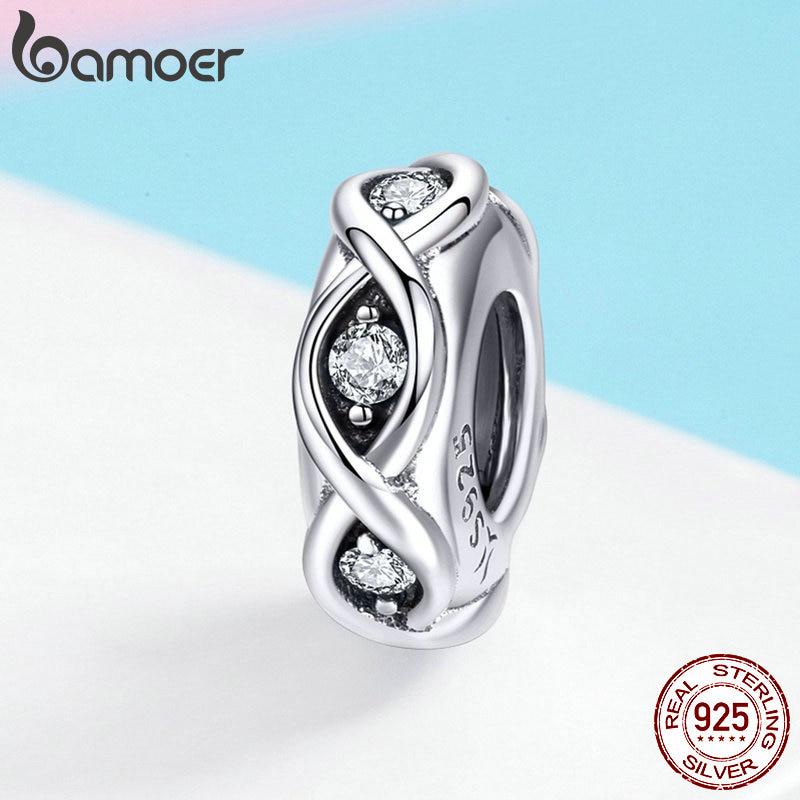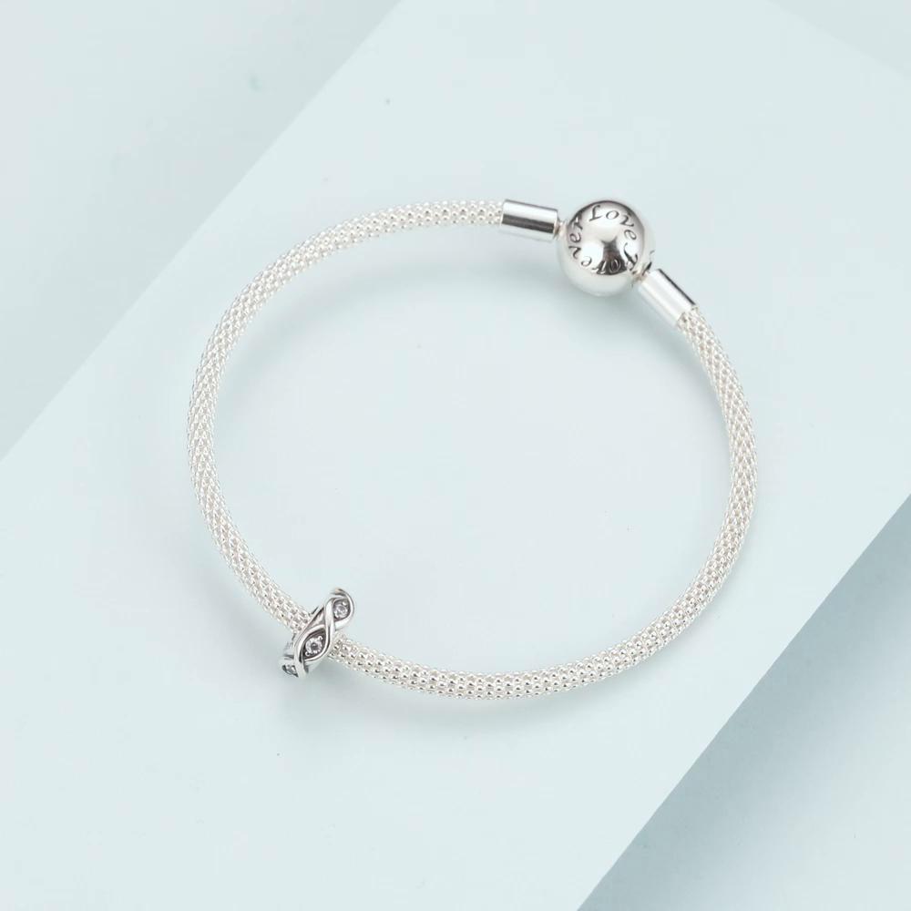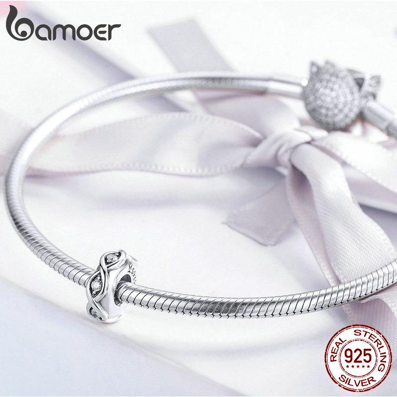 BAMOER Стерлинговое серебро 925 пробы с прозрачным фианитом Infinity Love Charm подходит для брендового браслета и браслетов из тибетского серебра