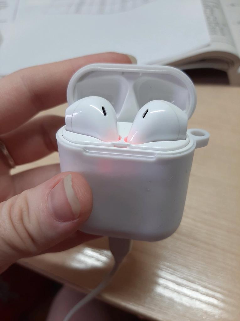 Очень ждала эти наушники. Пришли в целости и сохранности, без особых повреждений (только коробка немного помята, но это не сказалось на качестве товара) . Чехол в подарок с карабином приложен, комплектация полная (спасибо!). Это из плюсов, но минусов больше. ❌ ЗАРЯД ДЕРЖАТ НЕ БОЛЬШЕ 10 МИНУТ!!!!!!!! даже после того, как стояли 6 часов на зарядке ❌ бокс не закрывается плотно, слишком легко открывается.Магниты ОЧЕНЬ слабые ❌ ИНСТРУКЦИЯ НА КИТАЙСКОМ и английском! Ни слова на русском, никакой схемы. Очень долго пришлось разбираться с тем, как подключать и отключать, потому что работают иначе, чем оригинальные айрподсы, система другая немного (или много?!). ❌во время прослушивания музыки иногда происходит ее остановка и что-то вещает женский голос. Одна фраза понятная - про то, что разряжена батарея (хотя включила наушники 5 мин назад после зарядки!). ❌ если наушники не установлены в ухе под определенным углом - звук в разы тише. ❌сами по себе, выключаются даже после отключения. Огоньки долго горят, непонятно, как их погасить. ❌при звонке собеседник меня не слышит ИТОГ: внешне вроде более менее ок, но пользоваться наушниками НЕВОЗМОЖНО. В них просто нет смысла, больше неудобств. Наверное, Все-таки цена соответствует качеству. Но рассчитывала на большее, начитавшись хороших отзывов.
