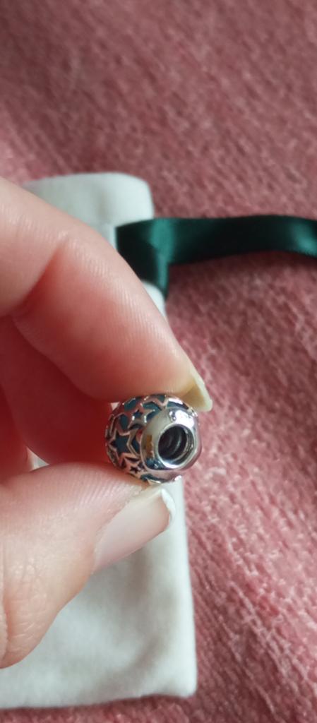 Все прекрасно, как всегда! подвеска очень аккуратно сделана, не магнитится, быстро нагревается- по всем тестам- серебро! Подарочный мешочек в комплекте! Нормальный размер бусины, внутри- резьба. накручивается без проблем на оригинальную Пандору, может быть использована как стоппер. Цвет как на фото продавца, приятный светло-голубой.