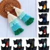 Богемные длинные градиентные многослойные серьги с бахромой, женские серьги с кисточками из шелковой ткани в этническом стиле