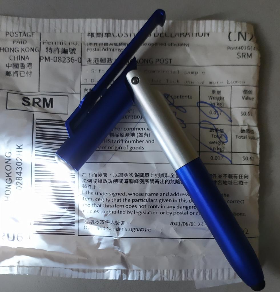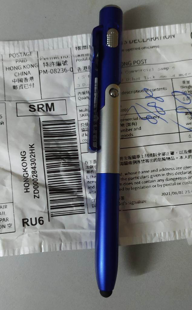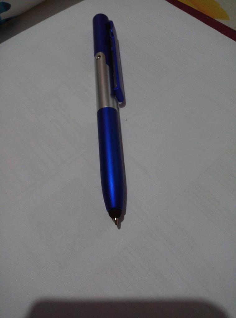 Пришёл в ящик. Стилус хороший, Фонарик приличный (но смотрит не в тетрадь, когда пишешь. Совсем не удобно, если эта вещь предназначалась для работы в тёмное время(если ты что-то пишешь, но без света) ), ручка пишет и подставка телефон не держит. Можно сказать, что вы покупаете не 3в1, а что-то одно. Или... Ручка Фонарик Подставка для телефона