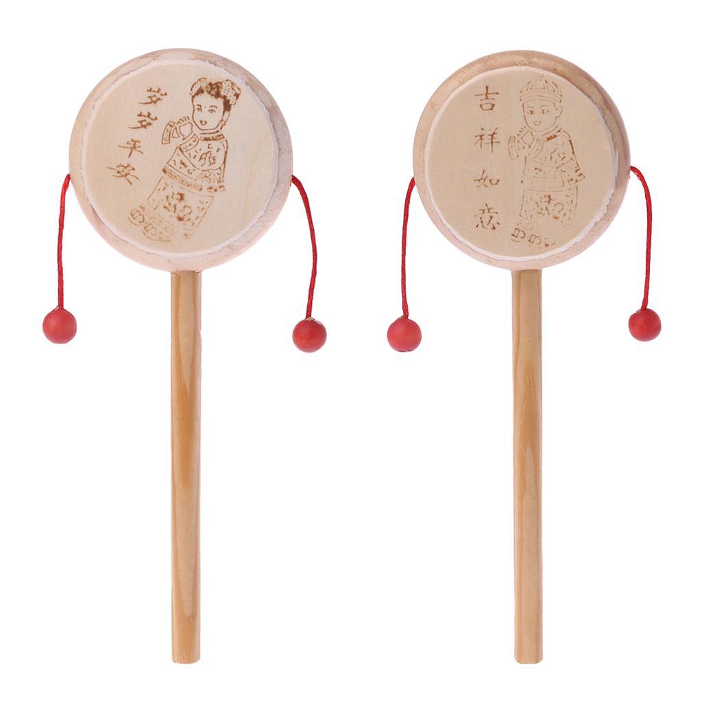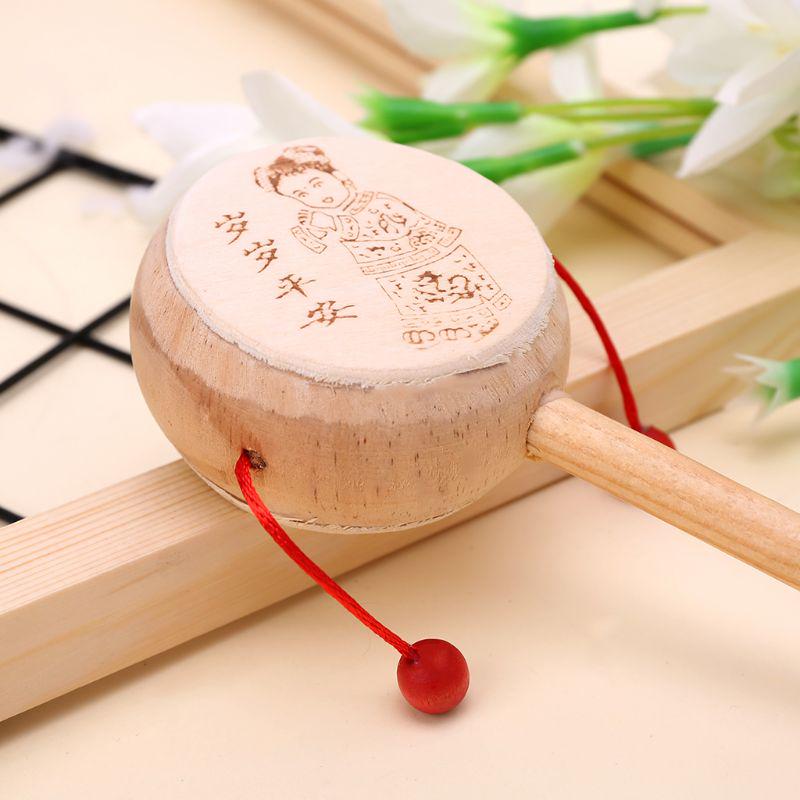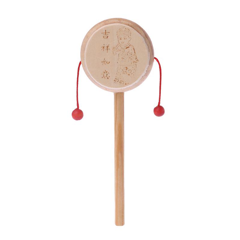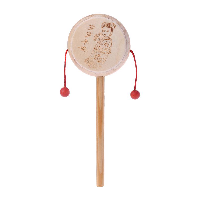 Деревянная мультяшная китайская традиционная вращающаяся погремушка-барабан, колокольчик, детская музыкальная игрушка