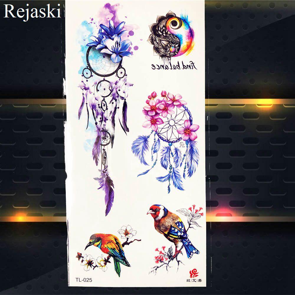 1PC Красочный Ловец снов Временная татуировка Поддельные DIY Перо Тату для женщин Боди-арт Живопись Татуировки
