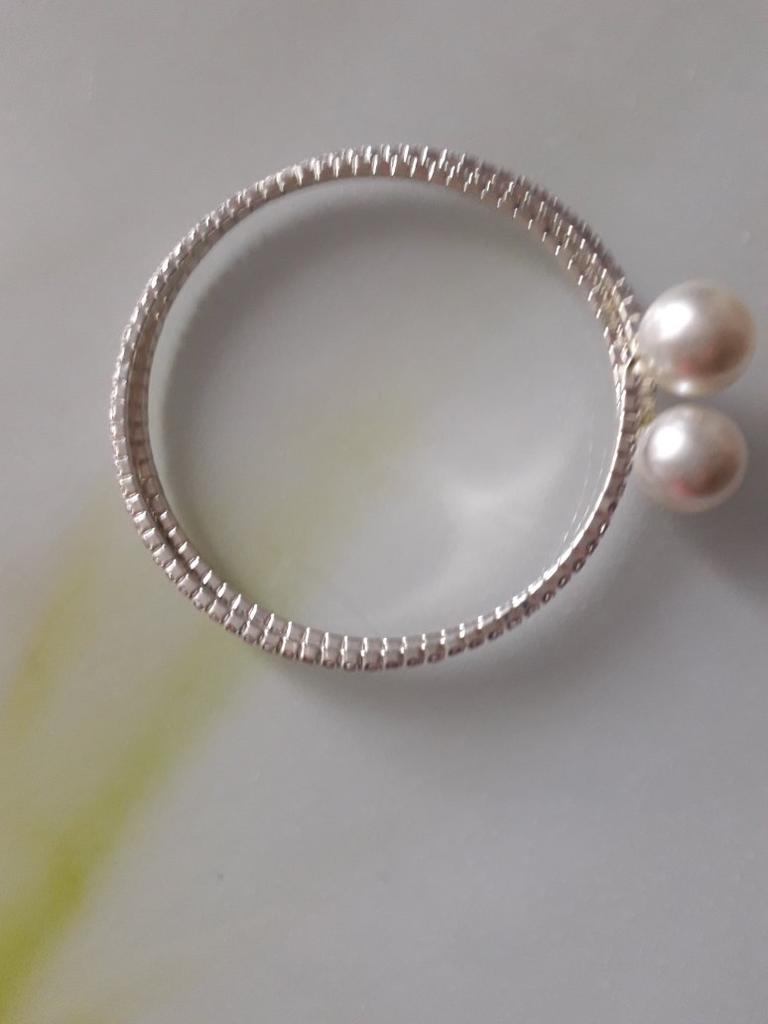 Такой красивый браслет!!! Камушки сверкают. Тонкий, изящный! Две жемчужины делают его оригинальным. Подойдёт на уку любой полноты. Не давит. Глаз не оторвать!!! Спасибо за доставленную радость. Рекомендую!!!!