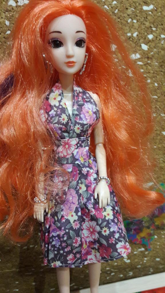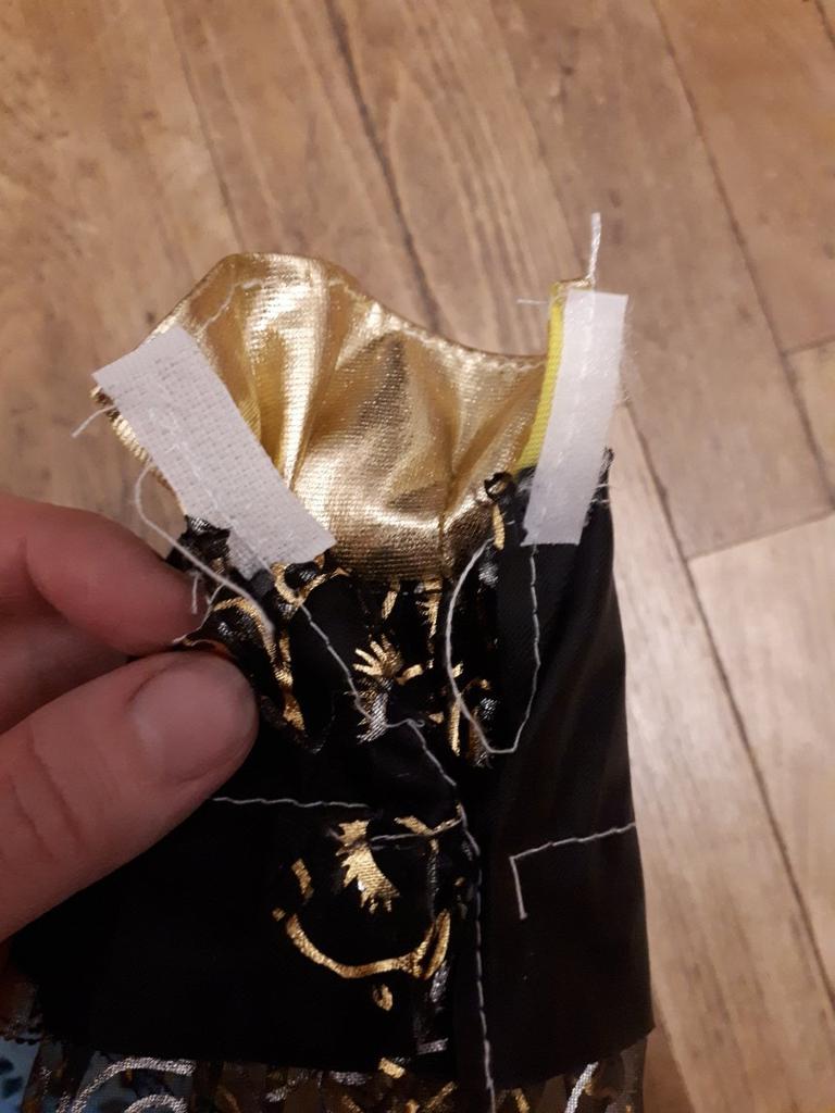 Мне казалось, что придёт просто сарафан, но оказалось, что юбка и рубашка отдельно, что очень хорошо. Сшито в общем-то неплохо, немного торчат нитки, ткань хорошая. На рубашке пятна от клея, попробую их убрать. Когда придёт кукла, для которой этот комплект был предназначен, добавлю фотографии.