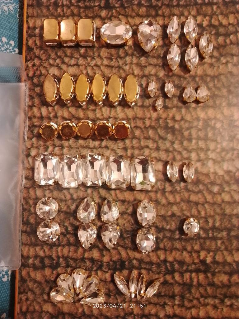Крупных треугольных нет, круглый 1, овальных нет, капля 1. Одни прямоугольные. По 4, 5, 6 одинаковых, а другой формы нет. В рекламе же разнообразие всех форм и размеров. Стекло закреплено небрежно, шатается в оправе.