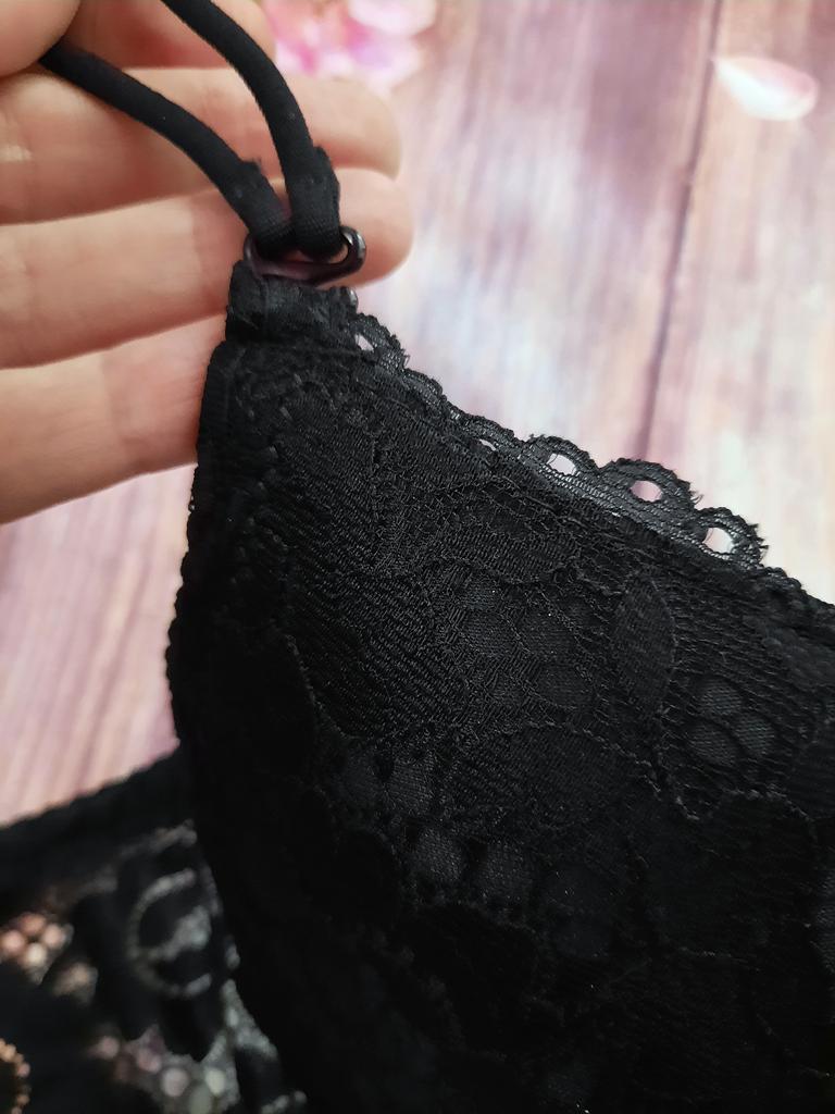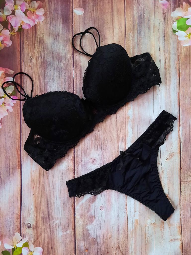 Лифчик красивый. Цвет потрясающий, качество неплохое. Недостатки:одна чашечка больше другой и помята. Фурнитура-тонкий пластик. Долго не протянет. И размер просто 36/80, нет А, В, D. Просто на В будет хорошо. У меня 75/С, носить можно, но не айс. Решайте сами. Стринги отдам кому-нибудь, не мой фасон. Трусики по размеру, но очень низкие, ничего не прикрывают и ещё тряпка в заднице. В общем, получила лифчик почти за 400р, не так уж дорого. Во время носки поняла, что чашка сверху висит в воздухе, не прилегает к груди. Надо что-то думать. Пришью резиночку, такую как на трусиках бывает. Лямочки слабоват на С, но в целом не плохо. Да, стирку перенёс хорошо, чашечка выпрямилась.