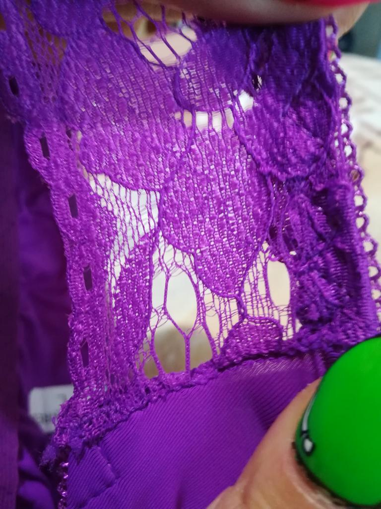 Здравствуйте! Получила свой заказ на почте. Посылка шла ко мне ровно месяц. Полностью отслеживались. На свои параметры ОБ - 90 и ОГ - 90 заказала размер 36C. Бюстгалтер ношу 75C Когда открыла посылку, то просто визжала от восторга😂😂😂. Цвет комплекта просто обалденный😍 Да и на вид смотрится очень достойно👍👍👍До этого на джуме заказывала другой комплект, но с размером не угадала. Пришлось подарить. Этот бюстгалтер мне подошёл. Сел просто идеально. Но настроение испортилось, когда увидела трусы. С одной стороны не много порванно кружево. Когда одеваешь смотрится, как будто на них дырка. 😪😪😪Обратилась в службу поддержки. Там меня уверили, что на картинке всё выглядит так же, как заявлено у продавца. Я не стала ни чего доказывать. Не приятный осадок конечно остался. Я хотела заказать и другие цвета. Теперь уже подумаю. В целом комплект очень понравился. Бюстгалтер ношу с удовольствием. При стирке не потерял своего цвета. 😁Ставлю 5 звёзд за быструю доставку. Продавца всё же рекомендую. Может мой случай 1 из 100.😉 Фото и видео прилагаю.