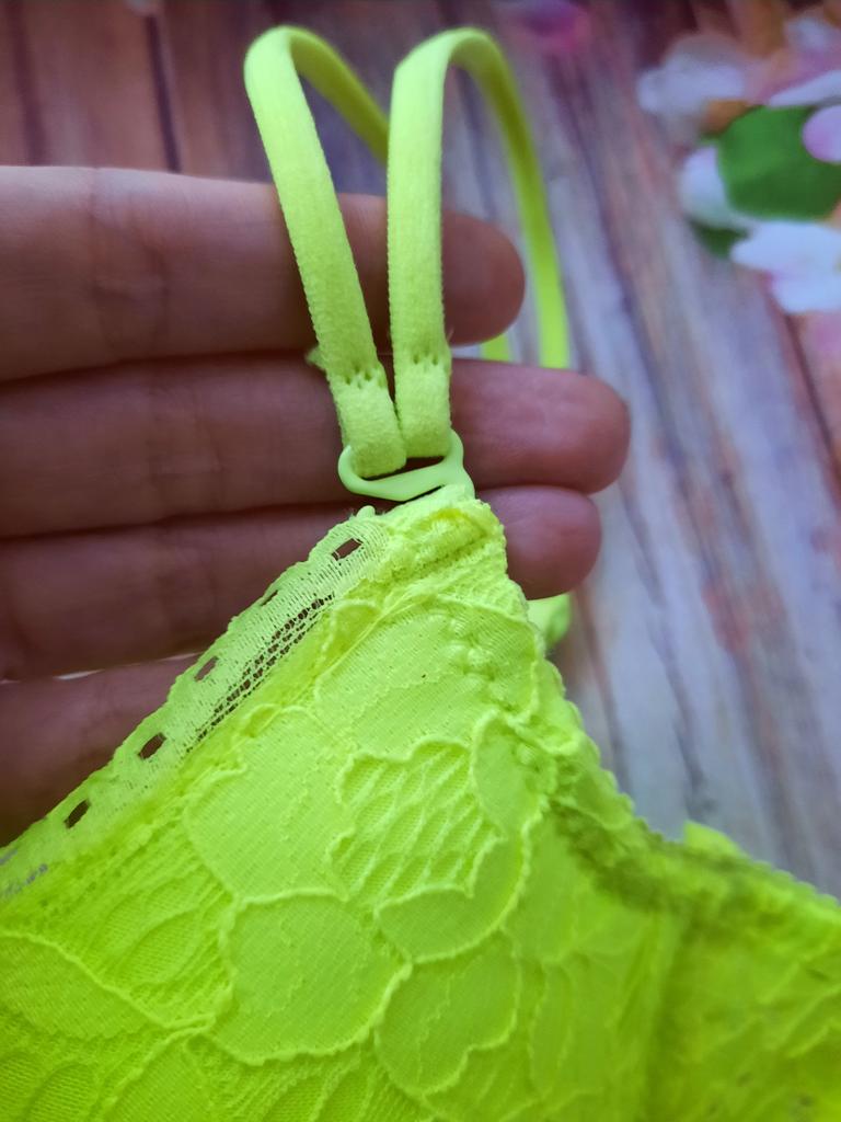 💚КОМПЛЕКТ НИЖНЕГО БЕЛЬЯ💚 только теперь уже в ярком салатовом цвете) ✔Качество👍вообще без нареканий)) ✔Мягенький и к телу очень приятный🤗 ✔Бюстгалтер отлично держит грудь, идёт без пуш-апа. Шлейки-резиночки двойные и по длине регулируются) Трусики-стринги и хорошо тянутся) ✔У продавца комплект представлен в нескольких цветах на любой вкус) ✨На свои параметры 95-59-96 заказала как и предыдущий комплект чёрного цвета размер 36С. Бюстгалтер сел идеально на объём под грудью 75 см и 3-й размер груди👌 Трусики размера L на бёдра 96 см тоже сели прекрасно)) 🛬Доставка в Беларусь 🇧🇾 три недели, посылка отслеживалась на всём протяжении пути👌 ✨Нижнее бельё классное и стоит совсем небольших денег. Рекомендую к приобретению от души!💯👍👍👍 🌞Будьте красивыми!)))🤗