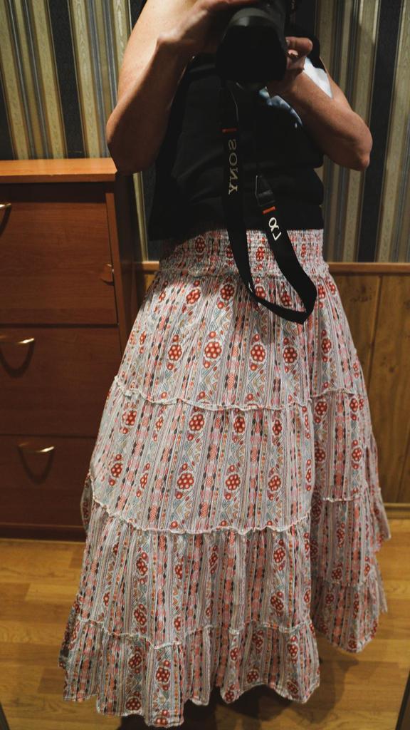 Юбка хорошая, но с недочетами. Полноценная длина, нормальный пошив,очень качестренно пришитый пояс. На рост 167 длина до щиколотки. НО носить невозможно, очень туго пояс, застегивающийся на липучку. Рассчитан на талию 58-60 см. Буду переделывать.