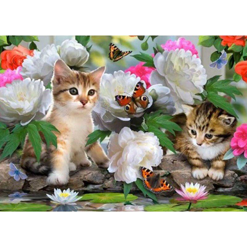 5D DIY Алмазная картина Кошка и цветы Алмазная вышивка Крестом Горный хрусталь Мозаика Украшение