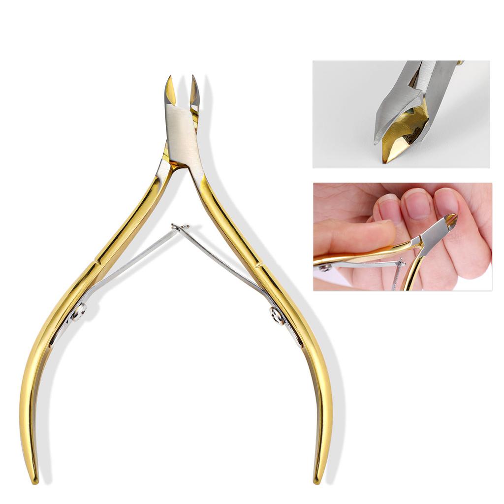 monja Щипцы для кутикулы для дизайна ногтей, толкатель, ножницы, золото, нержавеющая сталь, удаление омертвевшей кожи, чистка, маникюр, педикюр, инструменты для ухода