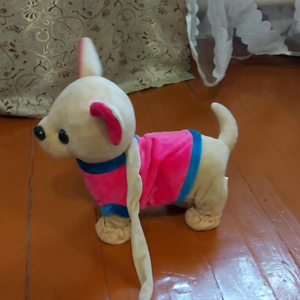 Интерактивная игрушка собака-робот.🐶😍😃 Доставили до Санкт-Петербурга за 24 дня. Трек полностью отслеживался. Упакована была в обычный резиновый и прозрачный пакеты. В комплекте с собакой идёт сумка-переноска. Сумка застёгивается на молнию и липучку. Собака работает от 3 пальчиковых батареек АА, которые в комплект не включены. Собака включается с помощью косточки и поводка. При нажатия собака начинает ходить под веселую музыку и мило вилять хвостиком, а также гавкать. Отдельным плюсом➕ хочу отметить съёмные чехольчики на лапки.🙂👍 Игрушка очень хорошего качества. К пошиву претензий нет: швы ровные, торчащих ниток нет. Игрушка не имеет постороннего запаха. Цена на момент покупки, с учётом скидки, составила 1584 рубля 90 копеек. Товаром очень довольна. Подоспел как раз к Новому году🥳. Дед Мороз🎅 не подвел. Дочка в восторге!😃🥰 Продавца, конечно, рекомендую! Спасибо большое joom!