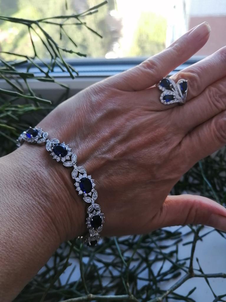 Набор неплохой, но серьги не такие шикарные как на фото, камни без света темные, имелкие, кольцо размер 7 на безымянный палец подошло отлично, Немного разочарована, ТК мелкое все. Люди, не покупайтесь на картинки красивые! Они их фоткают под увеличительным стеклом наверное. Качество устраивает. Спасибо продавцу. Товар шел долго 1.5 месяца. Набор в реале более мелкий
