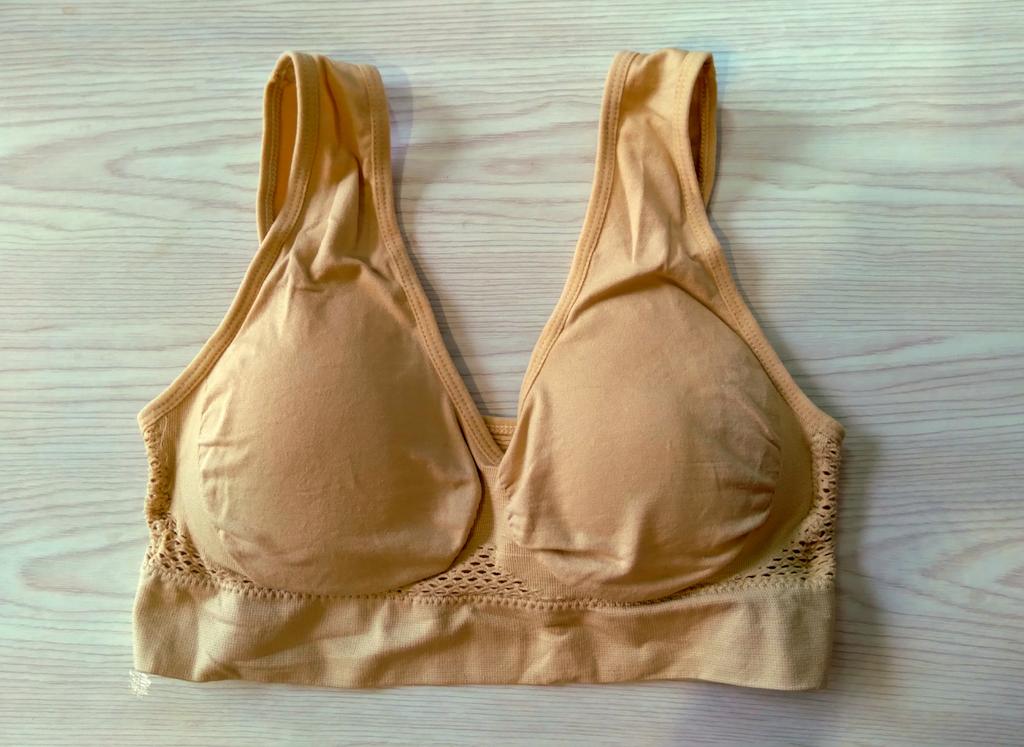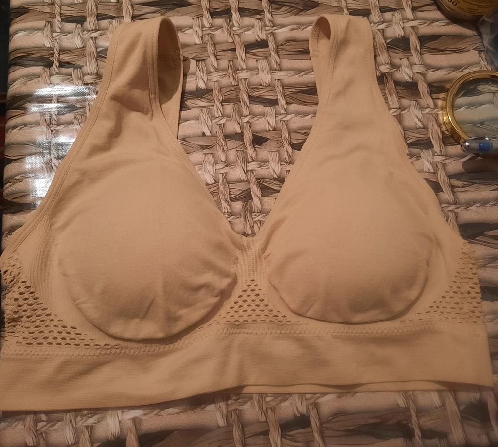 Мой любимый бюстгальтер. Беру уже второй. С первым помучилась немного-крючки при ходьбе растегивались, я их зажала плоскогубцами, они совершенно не нужны, потому что бюст можно надевать как топ. И проблема была решена. На теле не чувствуется, лямки с плеч не сползают(у меня покатые плечи и лямки постоянно приходилось поправлять), грудь держит идеально, хотя и костей нет(слава богу!-не давят, и стирать можно в машинке и не бояться, что вылетят). Складок на теле не образует, ничего не перетягивает. Ткань, как вторая кожа-ничего не раздражает, не корябает. Класс!