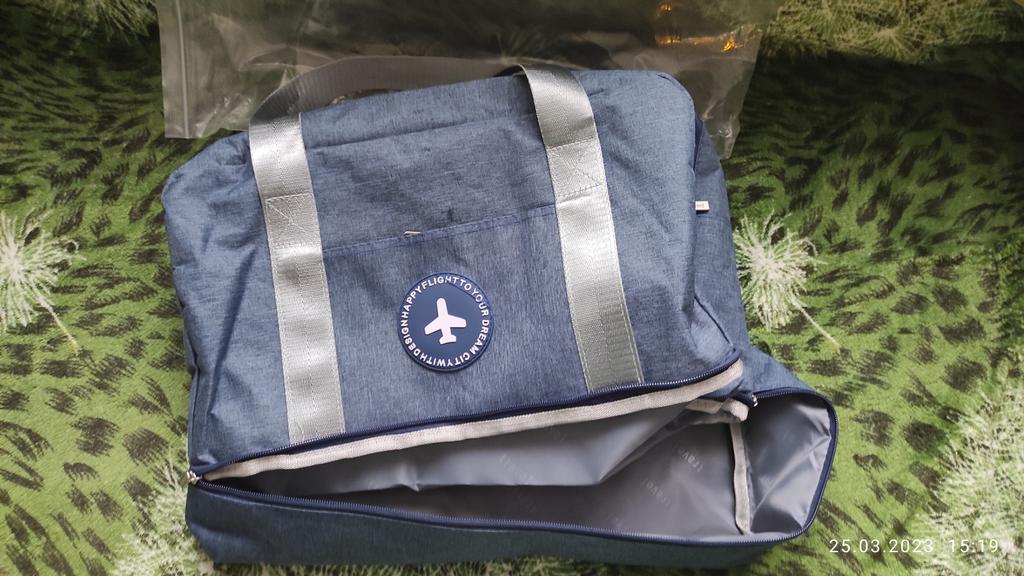 Сумка отличная. Ткань плотная. шитье качественное, замки все работают. Из двух отделений (одно в пленке). Удобно для бассейна. Я брала ее ходить на фитнес и бассейн. Показалось , что она меньше размером . Но уже использовала ее для дальних поездок. Очень порадовало,.что очень вместительная , много поместилось вещей. Да еще отдельное (нижнее) для обуви , что очень удобно. Туда положила еще бутылки с водой. По .параметрам подходит для ручной клади в самолет. Все отлично. Спасибо продавцу за отличный товар