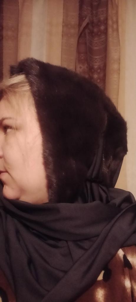 Красивый капор из меха норки. Качество очень даже порадовало. Есть нюансы, но все равно ставлю 5⭐. За такую цену шикарная вещь. Мех очень хорошего качества, менздра мягкая, мех равномерный, без проплешин, не сыпется. 2 больших пластины и 2 маленьких куска по бокам (в области ушей). Вот эти кусочки пришиты грубо, шов хорошо прощупывается и видно невооружённым глазом. Может распушится и не так видно будет. И ещё один ньюанс, это цвет. Когда увидела цвет влюбилась, в реалии не такой насыщенный. Палантин из мягкого трикотажа. На конце завязок меховые висюльки. Длина завязок хорошая, спокойно можно завязать на спине. Доставка в течении 3х недель, трек номер отслеживался. Упакован в фирменный зип-пакет, запаха не было. К покупке рекомендую, вещь стоящая, смотрится всегда красиво, элегантно. Мех норки очень тёплый, и стойкий к изнащиванию.
