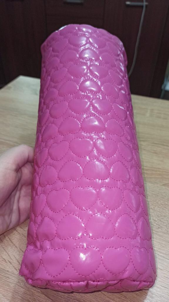 Подушечка правильной формы, без деформации, швы хорошие. Внутри поролон средней жесткости, рукам на подушке комфортно. Неприятного запаха нет.