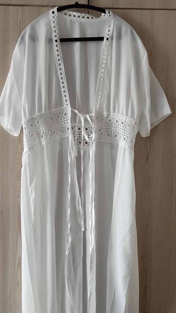 Белая пляжная туника или "халатик" 🤗, как кому нравится 😊. ☘️ Доставка обычная, 1,5 месяца. ☘️ Качество на твёрдую четверку. Ткань синтетика очень , сильно "липнет" к телу, без антистатика не обойтись😬. ☘️ Фото и описанию соответствует. Сшито достаточно аккуратно, немного маломерит. ☘️ XXXL подойдёт на российский 46 р. Но это для тех кто любит, чтобы вещь сидела более свободно ☘️ На мои параметры туника села в притык, для меня не очень комфортно,но не критично ОГ 103 см ОТ 87 см ОБ 112 см Спасибо продавцу К покупке рекомендую ..
