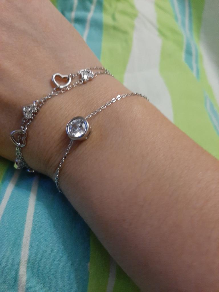 Красивый нежный браслетик в пару кулончику на шейку. Один минус самой не застегнуть не растегнуть застёжка неудобная. Камешек хорошо закреплён . Сияет красиво. Стерлинговое серебро 925 пробы и фианит.