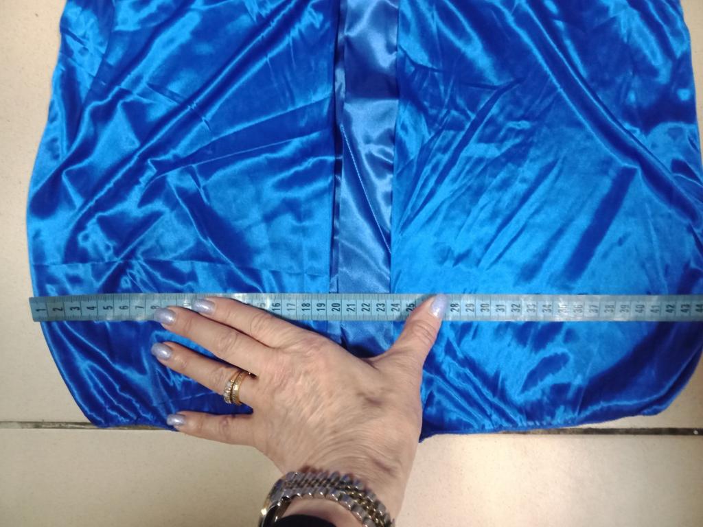 Халатик коротенький, куцый и в ширину и в длину на мои ОГ 90, ОТ 66, ОБ 100, рост 175. То есть, он конкретно не соответствует заявленным размерам. По груди вместо 106 см - 90 см По бёдрам вместо 110 см тоже 90 см. В длину вместо 89 см 80 см. Если бы продавец написал правду, какие халаты он присылает, я бы его не заказала. При этом очень стянуты боковые швы. И поясок прошит оверлоком наружу, эти так странно и грубо выглядит ..... На фото в приближении показываю стянутость, и измерения