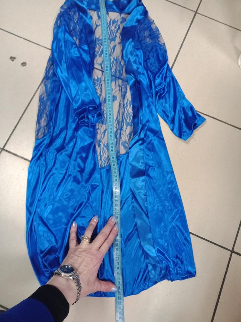 Запах кстати не плохой от халатика, какими то цветами. Доставка в районе месяца, отслеживалась до почты. Качество хорошее за такие деньги. Отмечу, что я маленького роста, 155,но фигуристая. Поэтому чисто визуально халат сел идеально, не короткий, перекрывает попу, но не сильно длинный. В общем, заказом довольна. На размер русский 44 взяла xl, самое то.