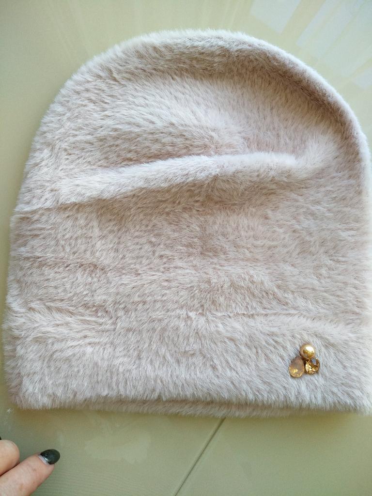 Ещё одна теплая пушистая шапочка. Очень мне понравилась тем, что придает объема голове, не обтягивает и не давит голову. Я специально показала,что можно и парик под нее одеть, мала не будет. Я люблю этот магазин Сомалер, он носит гордое имя проверенный. И это так , тут самые лучшие, хоть и дорогие, но качественные шапочки. Вчера получила серенькую зимнюю мохеровую, сегодня другого качества бледно розовую, может даже бежевая, цвет сложный. Она теплая демисезонная или даже зимняя, толстая. Как сделана непонятно, вроде вязаная, но с меховой нитью. Сверху смотрится как плюшевая. Высоты шапки хватит на любую голову и причёску. Шапка ещё не отпарена, пришла замятой. На последнем фото вид шва изнутри. Шапочку рекомендую.