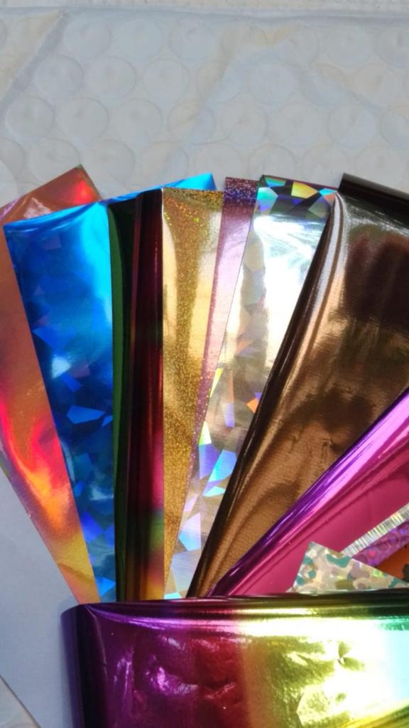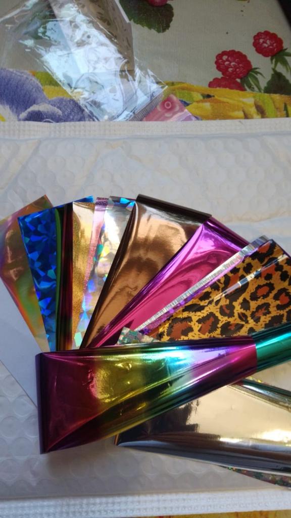 Очень красивые кусочки фольги. Их много, целых 24 штуки. Размер не большой примерно 4 на 10 сантиметров. Фольга безумно разноплановая, и металлическая и голографическая и с принтами. Огромный полет фантазии и творчества для мастера. Дизайнов получится очень много. Фольга мягкая отлично отпечатывается. Дошла очень быстро за три недели до Челябинской области. Не отслеживалась, положили в почтовый ящик. К приобретению рекомендую.