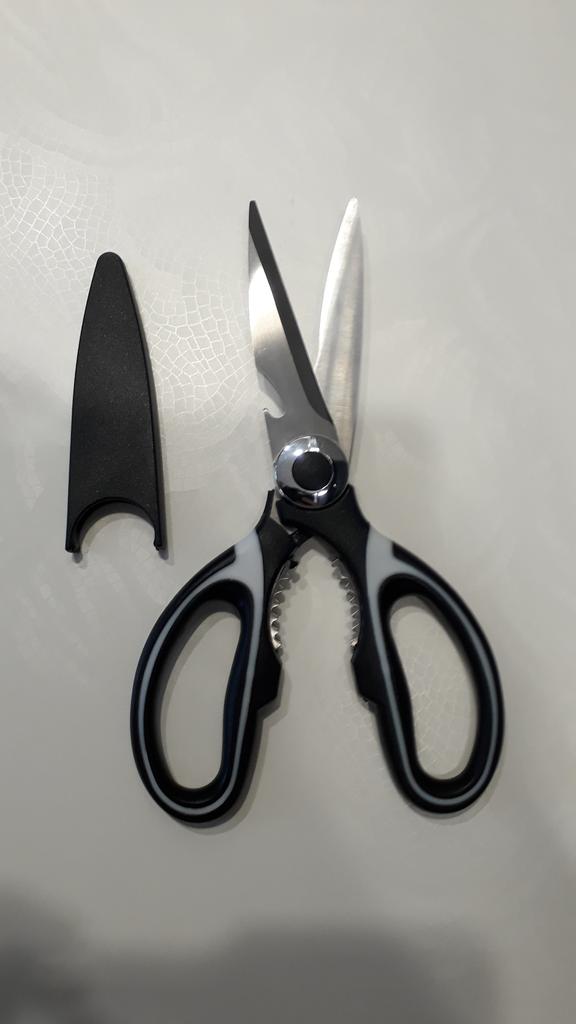 Всем привет! Заказала ножницы для кухни. При использовании поняла, что это просто не заменимая вещь на кухне. Товар качественный, многофункциональный: лезвия острые, стригут хорошо, орехи колит на ура и хорошо открывает запасы из домашних заготовок. Товар пришел в целостности. Получала товар на почте. Однозначно буду продолжать пользоваться данным товаром. Товар и продавца рекомендую :)