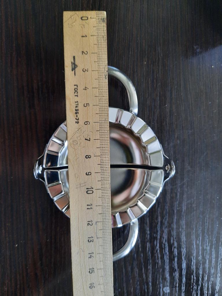 Заказ шёл полтора месяца до Санкт-Петербурга; пришёл в коробочке картонной и в простом почтовом пакете. Сама коробочка немного помелась, но на товаре это никак не отразилось. Формы была в целлофановом пакете, без сколов или царапин, металл в прекрасном состоянии. Заказывала самый маленький размер, но после варки пельмени всё равно получились достаточно громоздкими. Сгибается форма с небольшим усилием, скрипом глухим, но сжимается ровно - прижимает края хорошо. Внутри острые края, пусть и как бы загнутые. Делать круги из теста не очень удобно - крепление мешает надавливать сверху нормально. Чтобы к поверхности ничего не прилипло нужно каждый раз смазывать её либо маслом, либо мукой, а края теста промачивать водой, или иначе они не склеются. В целом, к этой штучке надо принаровиться и точно знать, какой толщины тесто и сколько начинки надо класть, иначе изделие не получается. Места много не занимает. Брала на попробовать, в целом, довольна.