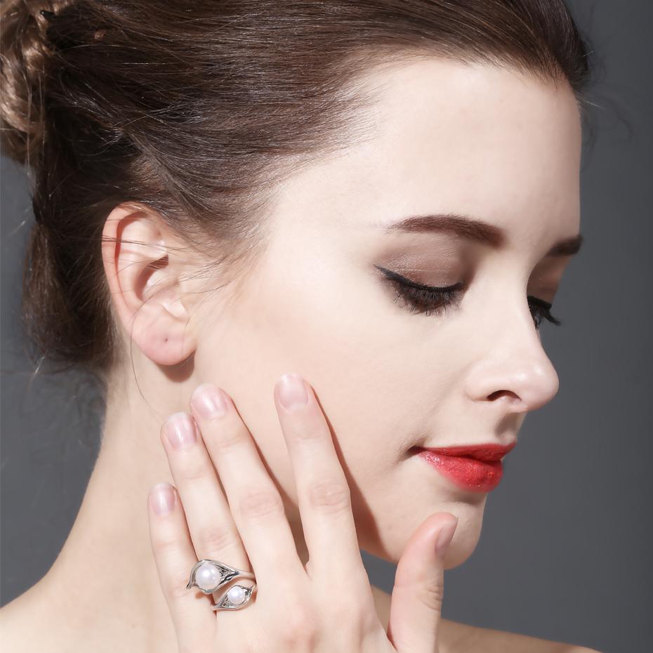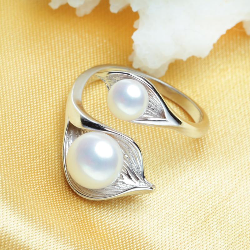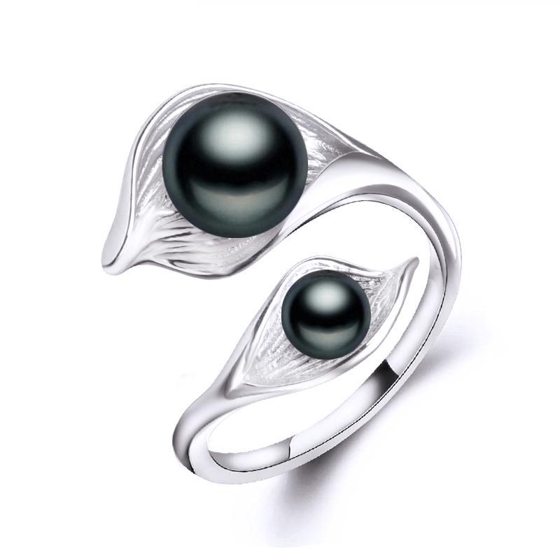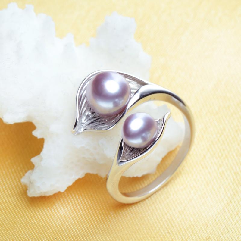 Кольцо под серебро выполнено в стиле оригинальных листьев со вставкой из натурального речного жемчуга разных цветов