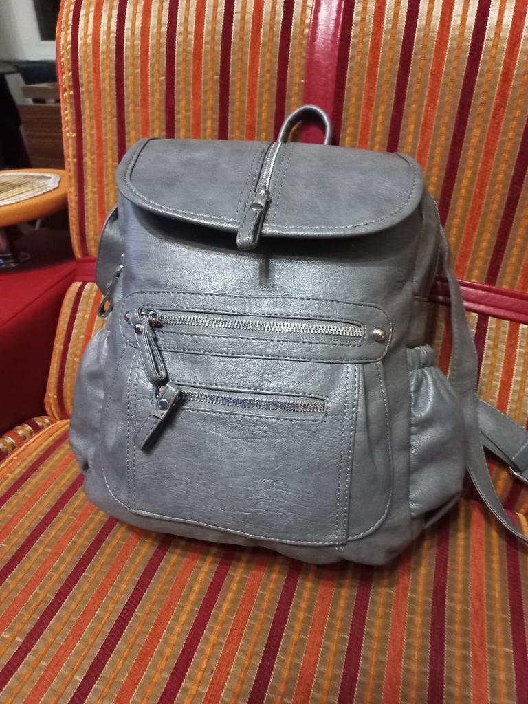 Рюкзак понравился, сделан качественно, все молнии работают, материал верха - мягкий. Конечно же , это кожезаменитель, из ПВХ, но хорошего качества, запах отсутствует. Подкладка из плотного шелкового материпла, черная, пачкаться не будет. Ремни широкие с пряжками для регулировки длины. Есть ручка-петля для переноски рукой. Всего 6 отделов на молниях и еще один седьмой внутри рюкзака в подкладке, и 2 боковых внешних кармана. Все продумано .