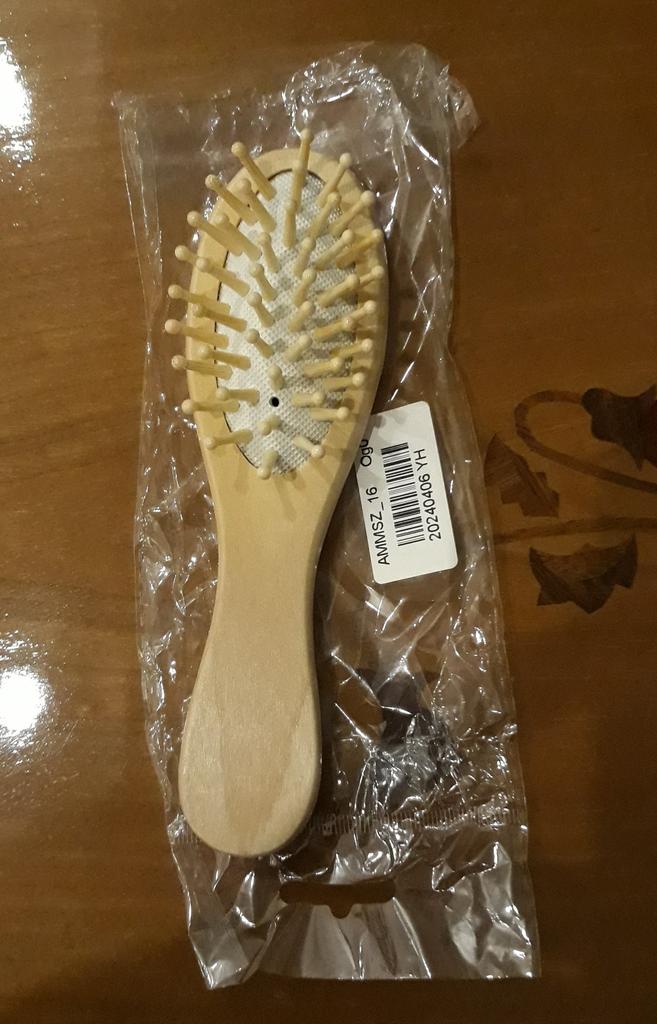 Розческа Доставка: 29 дней, товар не отслеживался, вообще с почты позвонили ещё в субботу, но забрала только сегодня(в понедельник) Упаковка: почтовый пакет + индивидуальный пакетик Материал: вроде дерево, очень лёгкая Присутствует неприятный запах лака, один зубочек сломан и также видно что не аккуратно проклеено В деле нормальная, волосы не дёргает В принципе товар рекомендовать могу
