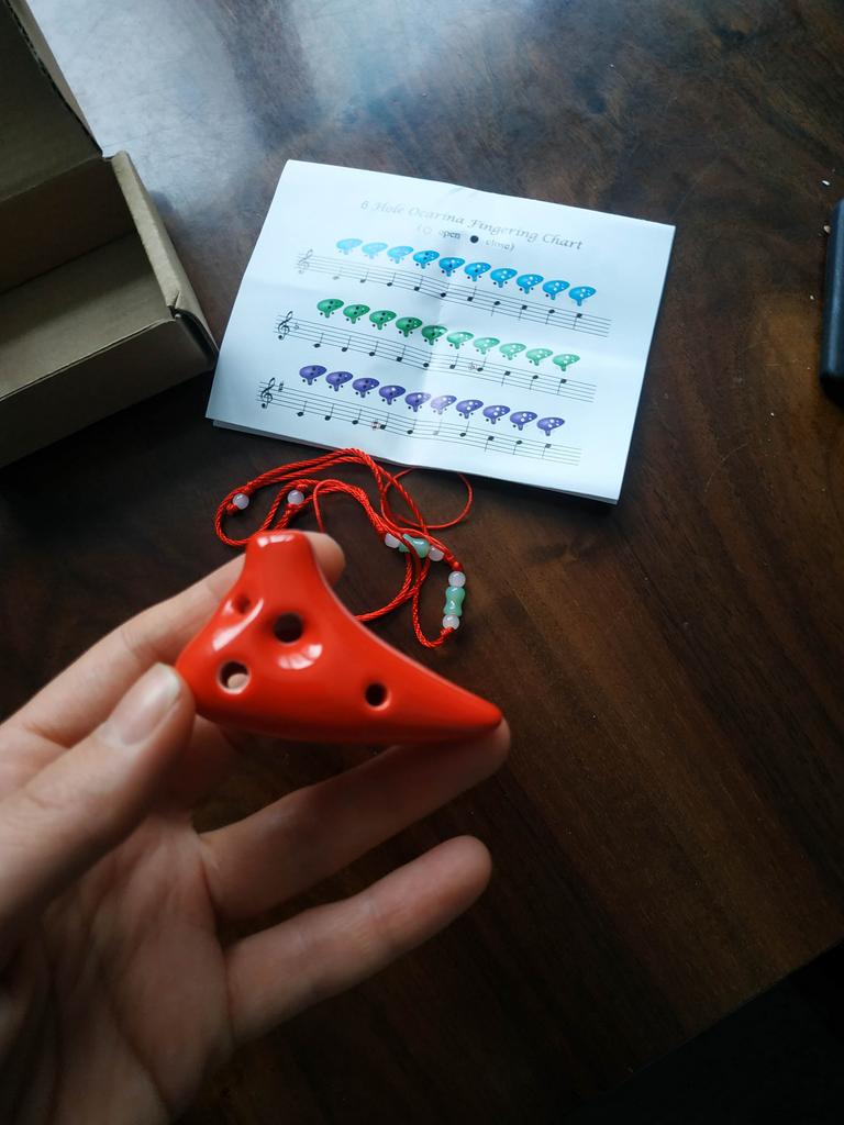 Приехала достаточно быстро, по сравнению с остальными заказами. В комплекте еще шла веревочка, которую можно привязать и носить на шее(?), и инструкция как ставить пальцы, каким образом зажимать отверстия для создания нужных нот, схема нескольких мелодий. Это все было бы хорошо, но что бы она звучала чисто и красиво, а не со свистом и хрипением надо постараться. Для украшения может и подойдёт, но для игры вряд ли🤷🏻 Дополняю, претензии сняты, звучит нормально, на 4/5 :)