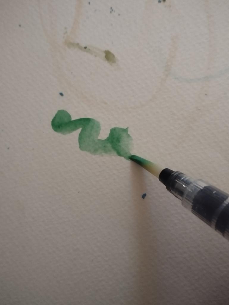 Кисть понравилась. Удобно заправлять, мыть. При нажатии на пипетку краска не вытекает, только когда прикасаешься к поверхности бумаги.