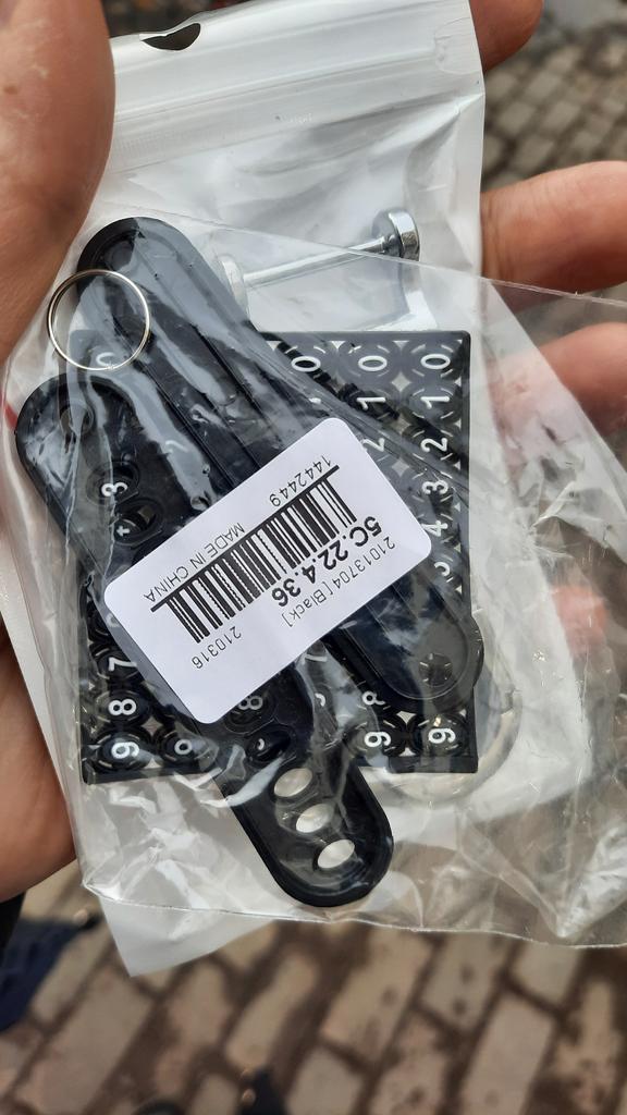 Прекрасный номерок, брала черный и красный. Вставила цифры, соединила две половинки, прицепила колечко и на ключи. Классная вещь, небольшая, совсем не мешает. Я довольна. На красный вставила цифры черно белые, смотрится лучше, чем красные.