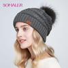 SOMALER Шапки с помпоном из натурального меха енота для женщин, зимние теплые вязаные шапочки с напуском, женская мешковатая лыжная кепка