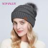SOMALER Зимние шапки с напуском для женщин, вязаная шапка для женщин, мешковатая шапка с помпоном из искусственного лисьего меха