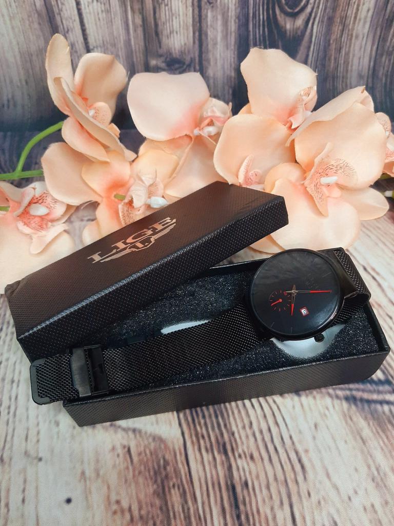 Водонепроницаемые кварцевые мужские наручные часы ультратонкого дизайна с датой на циферблате и сетчатым браслетом в подарочной упаковке