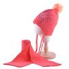 Зимняя шапка и шарф для девочек, теплая однотонная вязаная шапка, комплект с жемчугом, помпоном из искусственного меха, детская шапка