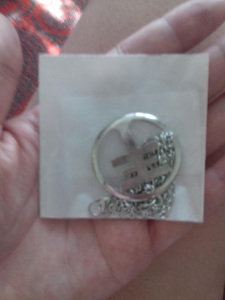 Шикарный кулон! Думала будет меньше, немного есть царапинки а так все отлично! Посылка пришла на 9 дней раньше) спасибо джуму!🖤❤️