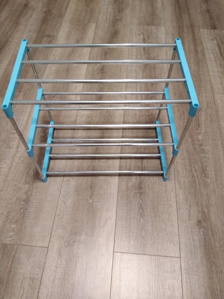 Прикольная полочка, миленькая. Думали, что будет больше (на картинке было на 4 уровня и на 5 уровней, а пришла на 3 уровня). Судя по материалу (очень тонкое и лёгкое железо), на полочке могут "жить" только лёгкие туфельки и тапочки, а не мужские зимние ботинки или современные большие кроссовки.