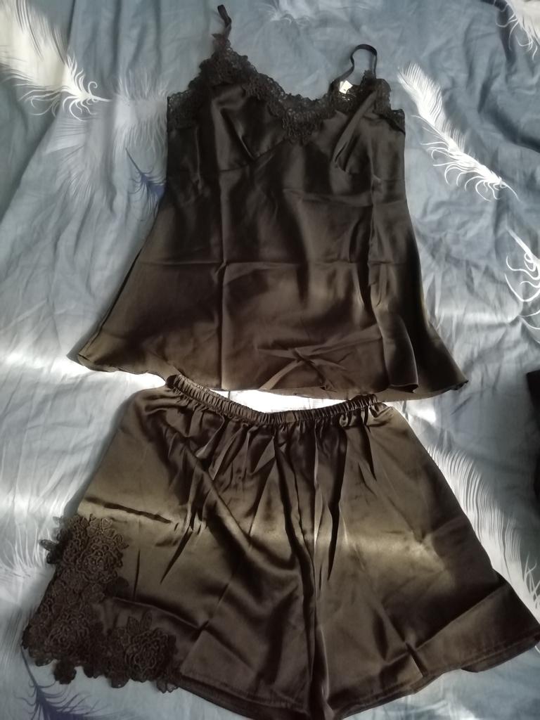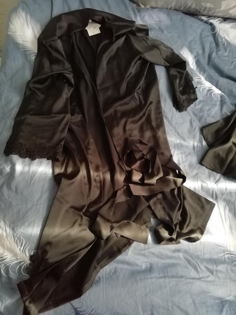 Комплект мне сначала очень понравился. Ещё бы, пять вещей по такой цене! Из плюсов: 🔹Приятная на ощупь ткань 🔹красивый цвет, 🔹село всё как надо (заказывала размер m на свой 42). 🔹На теле вещи тоже ощущаются великолепно, несмотря на то что это синтетика. * после глажки всё выглядит ещё лучше, кстати гладится очень легко. Теперь о минусах: — На всех вещах в некоторых местах торчат нитки — Легко остаются пятна, даже после обычной воды — На халате нет карманов 😔 не знаю как вам, но меня немного расстроил этот факт В целом комплект стоит своих денег, рекомендую. Позже дополню фото *Дополняю отзыв спустя месяц использования На всех вещах заметила какие-то швы, петелки и т. п., т. е. вещи сшиты НЕКАЧЕСТВЕННО. Также очень быстро появляются пятна, даже от воды.