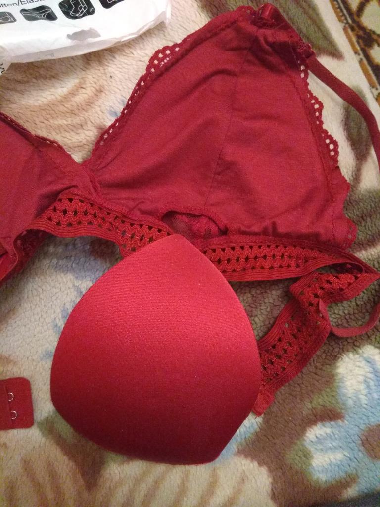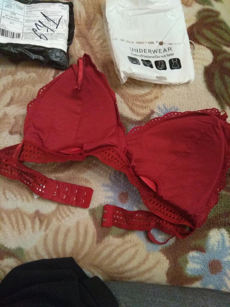 Получила бюстгалтер без косточек. Реальный цвет: античный рубиновый (бордовая вишня 🍒 или винно-красный), наподобие как ранее купленный мной комплект с чёрными лямочками, не алый как получился на моем фото. Хорошего качества, есть небольшие ниточки на лямках, где утяжка до нужной длины, но их можно обрезать. Целый ряд крючков, бюстгалтер регулируется на несколько размеров под грудью. В чашках кармашки с шелковистыми вставками. Передняя часть ажурная прозрачная, но за счёт вставок и кармашков, она не просвечивает. Упакован лифчик в фирменный пакетик. Красивый. Доставка в Минск 0,5 месяца с 20 марта по 9 апреля, трек отслеживается полностью, получен на почте по извещению, не в ящике. Бюстгалтер неплохой, на маленькую грудь. Если нечего держать. Объёмную и тяжелую грудь он не удержит, косточек нет, поддержки снизу тоже, только мягкие вставки без пуш-апа, которые вынимаются при желании. Дополняю отзыв: данный бюстгалтер окрашивает воду при стирке. На последнем фото: первый слева (сохнет: это не первая стирка). Немного кривовато сидит, к нему я приобрела трусы #3 с шармом (сердечко) и комплект (слева #2 трусы и #4 бюстгалтер). Фото -- реальный цвет. Всё куплено на Джум. Лямочки отрываются, пришиваю).