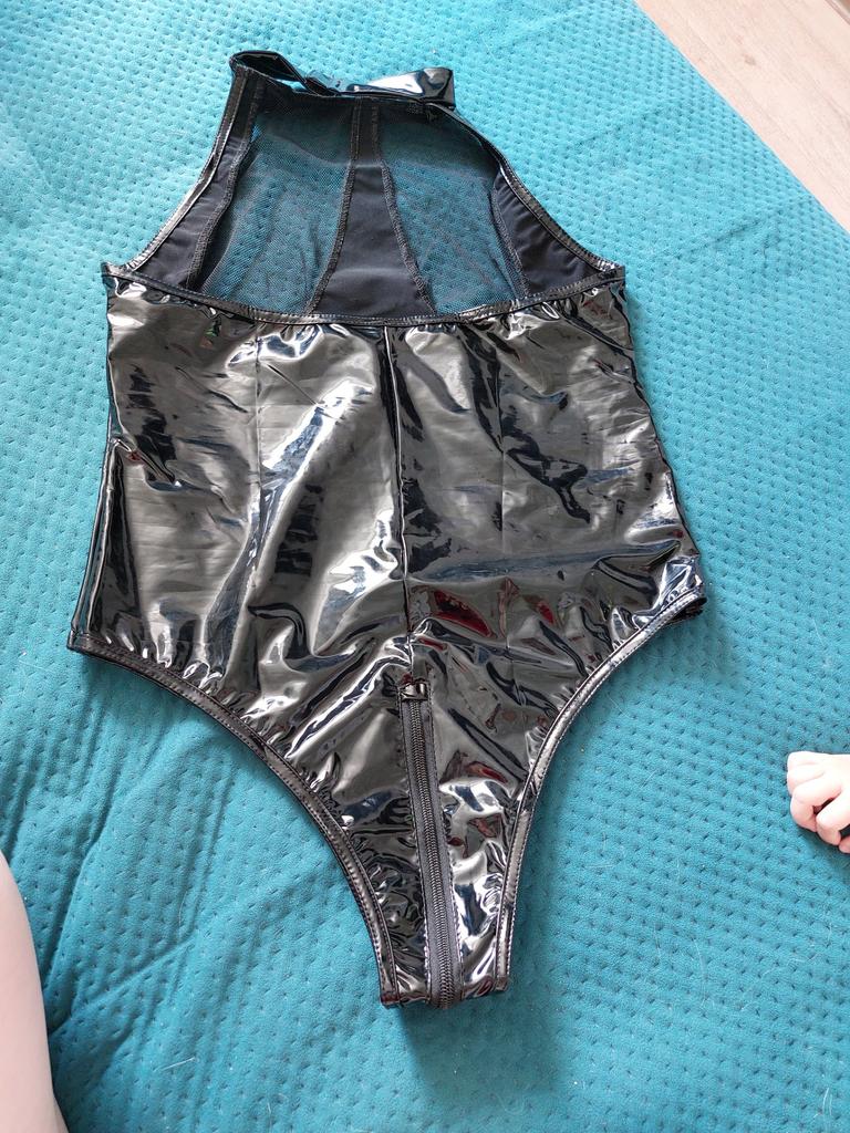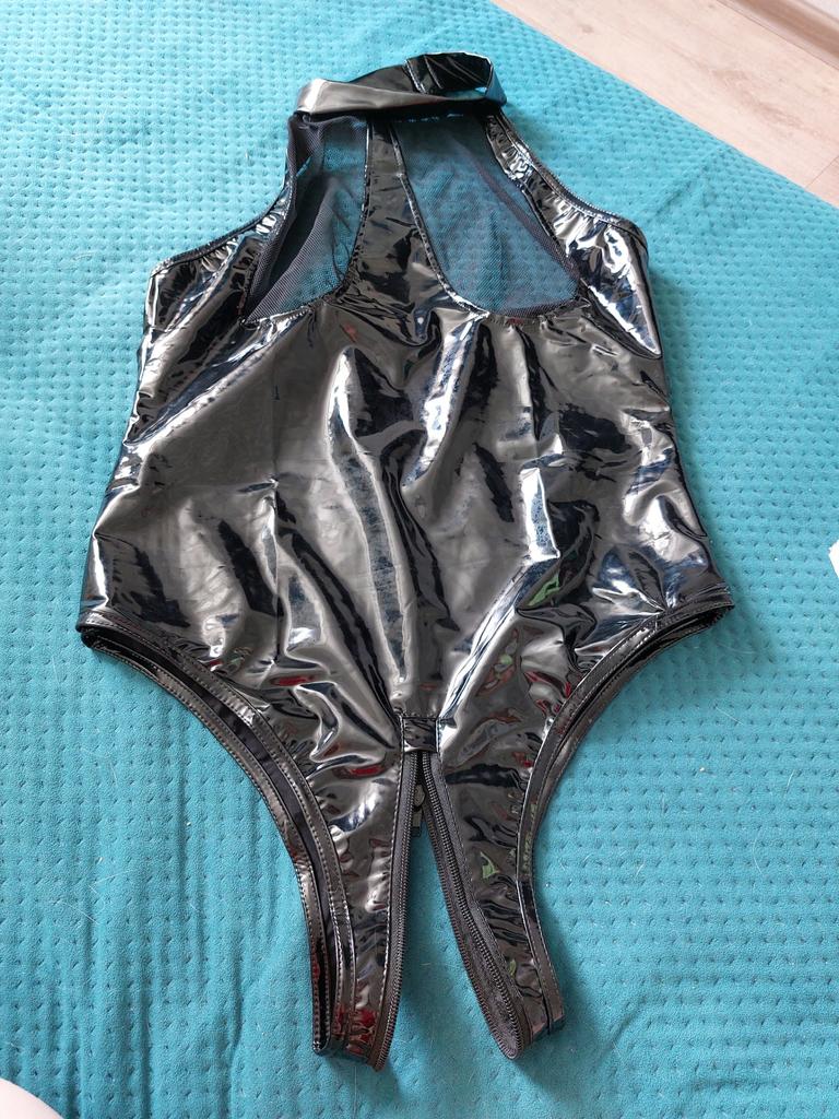 Сексуальное кожаное боди с сеткой в районе груди, 1 шт