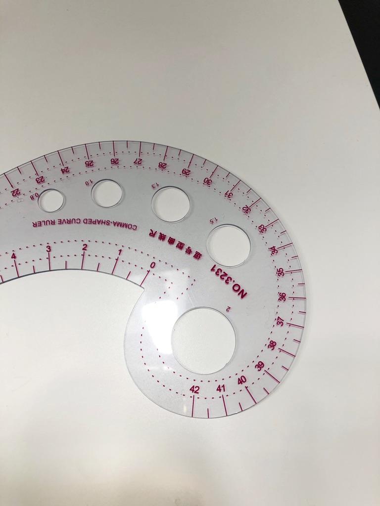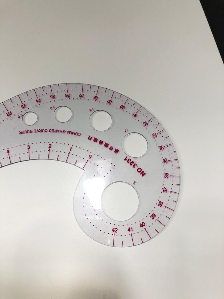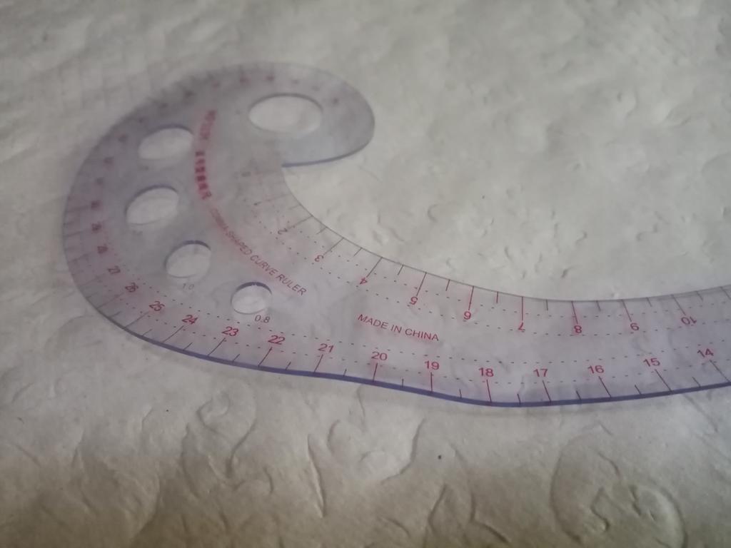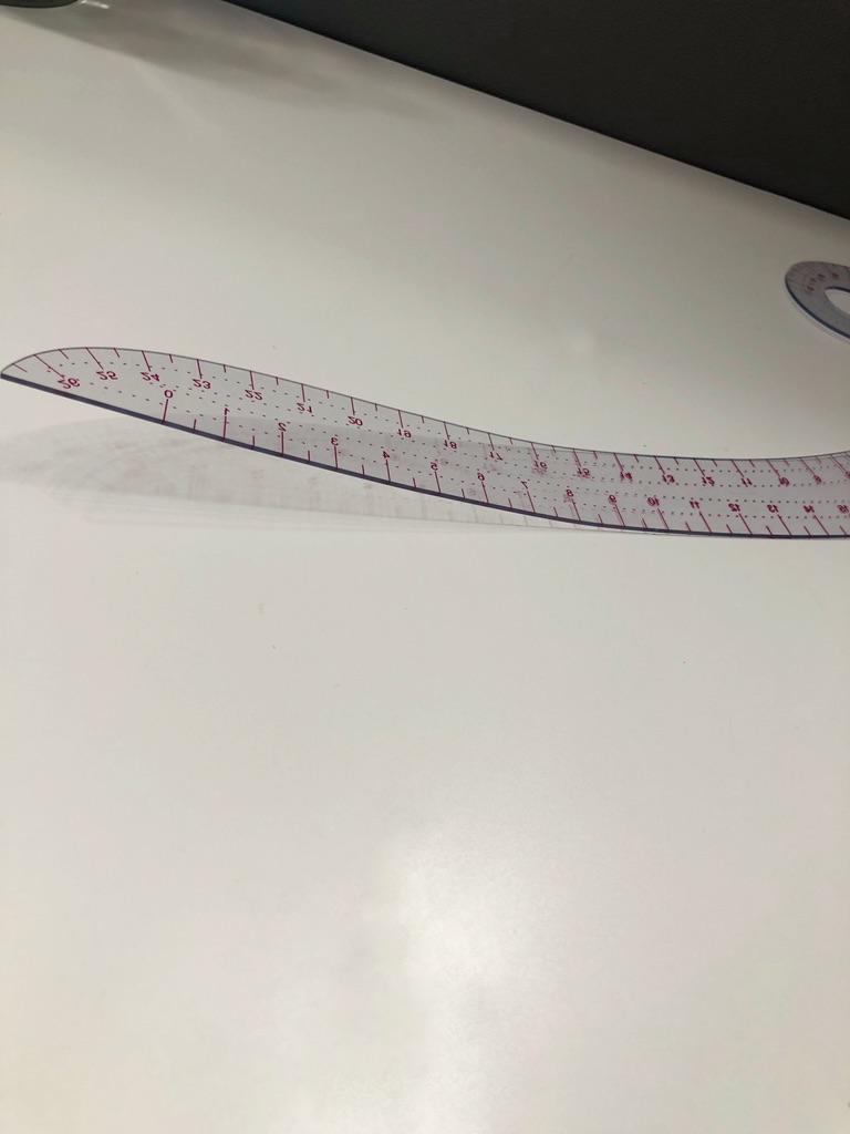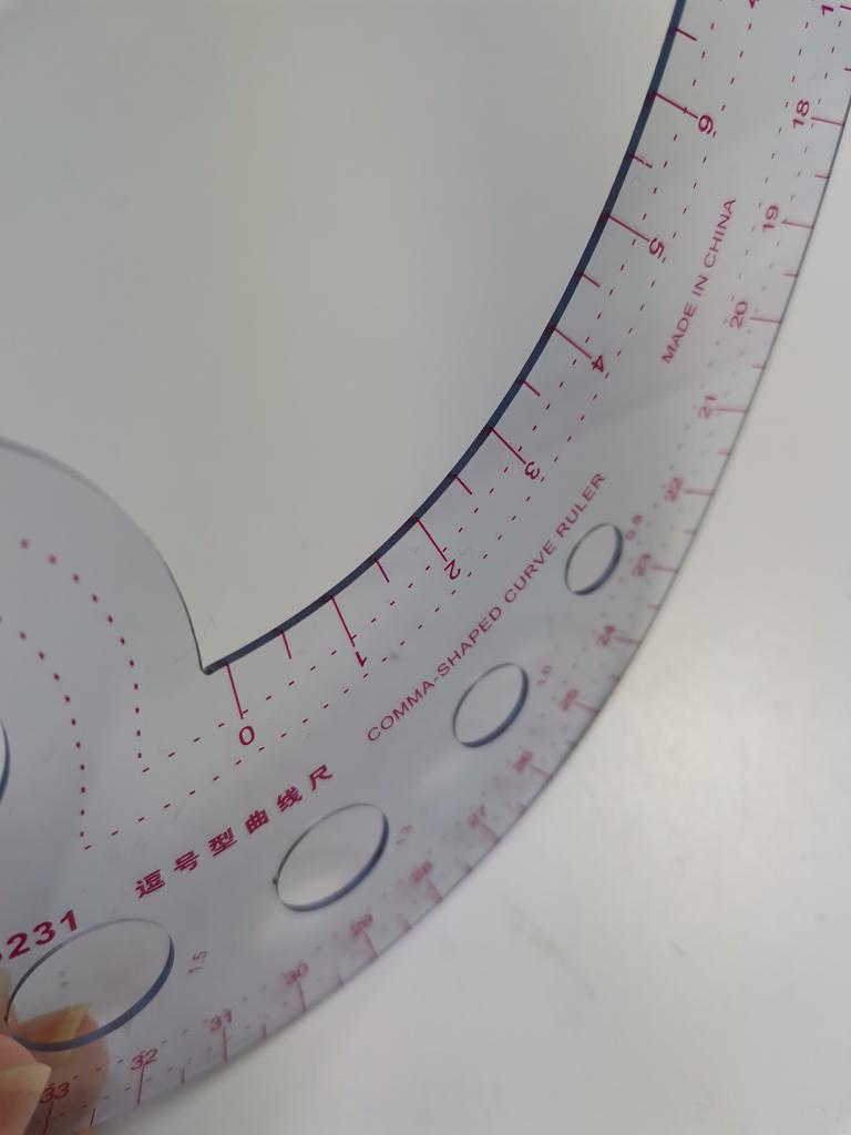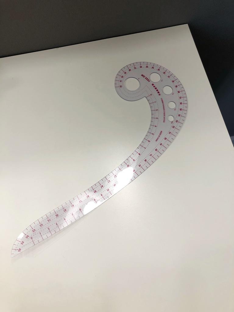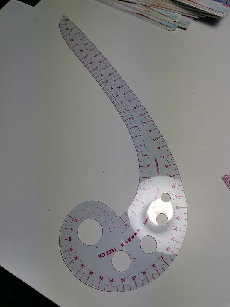 Третье лекало которым я пользуюсь) Очень удобно кроить ими воротники , чтоб были ровные , и различные изгибы. Для швей, эта линейка необходима просто) Выполнена из пластика средней плотности, прогибается. Но это не мешает выполнять свою работу) Пользуюсь год, начальный вид не изменила, цифры не стёрлись. В Москву доставка заняла месяц.