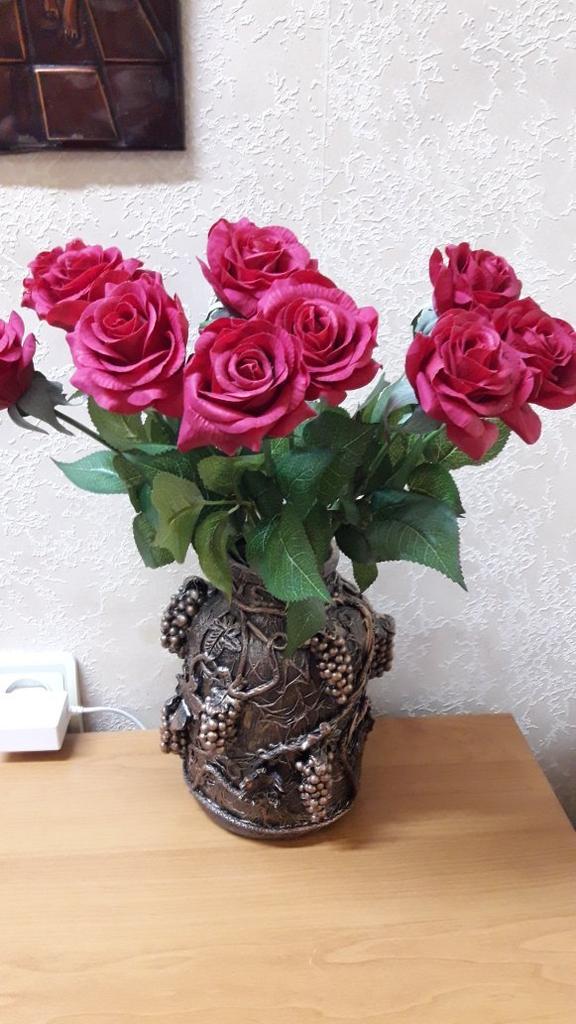 🌹Розы! 🌹Розы! 🌹Розы! 🌹Обожаю розы!!🌹Хочу собрать огромный букет. 🌹Уже заказывала такие розы, правда у другого продавца.🌺Этот продавец подкупил упаковкой (воздушный мешок). 🌹🌹🌹Все мои ожидания оправдались! 🌹Розы просто шик!!!!!!! 🌹🌹🌹Просто как настоящие Несмотря на бережную упаковку, головки все равно немного примялись. Но это не беда. Пять минут феном или над паром и все готово. 🌿Стебель пластмассовый, даже есть шипы. 🌿Листья очень реалистичны. 🌺Бутоны латексные, на ощупь очень мягкие и приятные.( Правда, немного мелковаты, хотелось бы побольше, но это их совсем не портит).🌺Все выглядит очень натурально.🌹🌹🌹 ОЧЕНЬ НАТУРАЛЬНО!🌹🌹🌹 Каждый раз, когда прохожу мимо, хочется их понюхать ( к сожалению они не пахнут). 🍀Кстати о запахе. Его нет. Т.е. нет никакого едкого, противного, или еще какого-то запаха вообще. Когда распаковала, был запах полиэтилена от упаковки, но он быстро выветрился.🌹 Все, кто видел их у меня в вазе, сначала даже не понимали, что они искусственные. А на фото от настоящих просто не отличить. 🌹🌹🌹В общем я просто в восторге от них!!! Радостное настроение обеспечено! И обеспечено надолго, потому, что не завянут.🌱 В уходе просты. 🌱Легко протираются влажной тряпочкой, а при необходимости можно помыть.( Но аккуратно, без фанатизма).🌹 В общем, повторюсь, я просто в восторге!!! Теперь буду делать специально под них вазу. Однозначно рекомендую! Буду собирать огромный букет. 🌹🌹🌹🌹🌹🌹🌹🌹🌹🌹🌹🌹🌹🌹🌹🌹🌹🌹🌹🌹🌹🌹🌹🌹🌹🌹🌹🌹🌹🌹🌹🌹🌹🌹🌹🌹🌹🌹