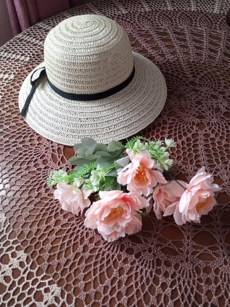 Чудесная недорогая соломенная шляпка! Очень женственная, поля среднего размера - не маленькие, но и не огромные. Ленточку можно менять на другие цвета. Что касается размера, максимум до 58 см, на мою голову 59 см налезла, но с трудом. Т.к. шляпка достаточно глубокая, надеюсь, что не будет слетать. Завязочка грубовата, из обыкновенной резинки, больше для удобства хранения (вешать на крючке и т.п.).