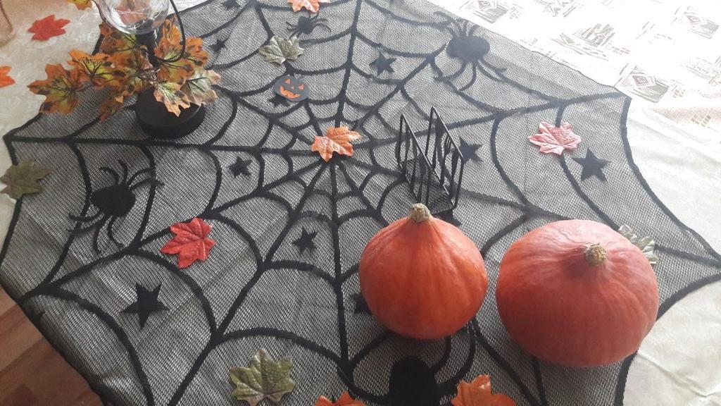 🕸️Скатерть-салфетка🕸️ Под неё обязательно нужна светлая однотонная скатерть, тогда будет смотреться классно. 🕸️Материал тканевой салфетки, типа х/б-шной тюли. 🕸️Край в некоторых местах обрезан неаккуратно, за это снизила звезду. 🕸️Центр рисунка сдвинут, расстояние от центра до выступающих углов колеблется от 55 до 49 см, также и вогнутая часть от 44 до 49 см. За счёт этого создаётся впечатление слегка наклонённой паутины. 🕸️По паутине идут звёзды и 4 паучка разного размера. 🕷️В целом салфетка мне понравилась. Доставка в Пермь 43 дня в консолидированной посылке живым треком. ❤️Прекрасного Вам настроения и удачных покупок🤗